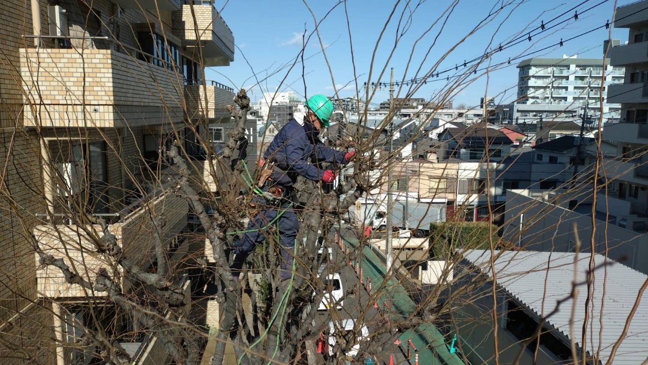 ケヤキの剪定作業